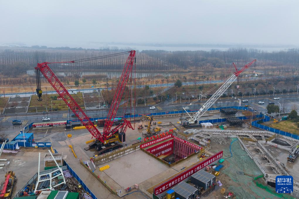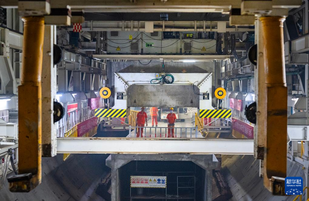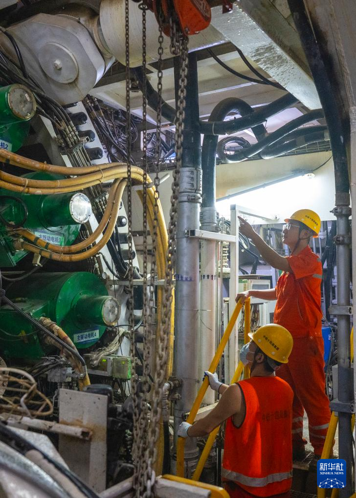 中铁十四局工作人员在芜湖龙湾长江隧道进行施工作业(1月16日摄)。