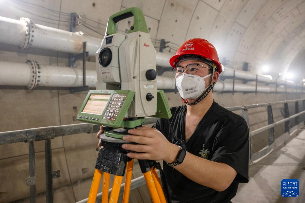 中铁十四局工作人员在芜湖龙湾长江隧道进行测量作业(1月16日摄)。