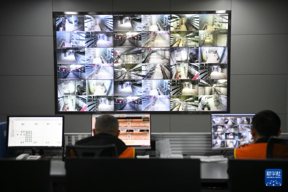 1月26日,在四川天府新区雅州路综合管廊控制室,工作人员通过监控系统了解管廊内部情况。
