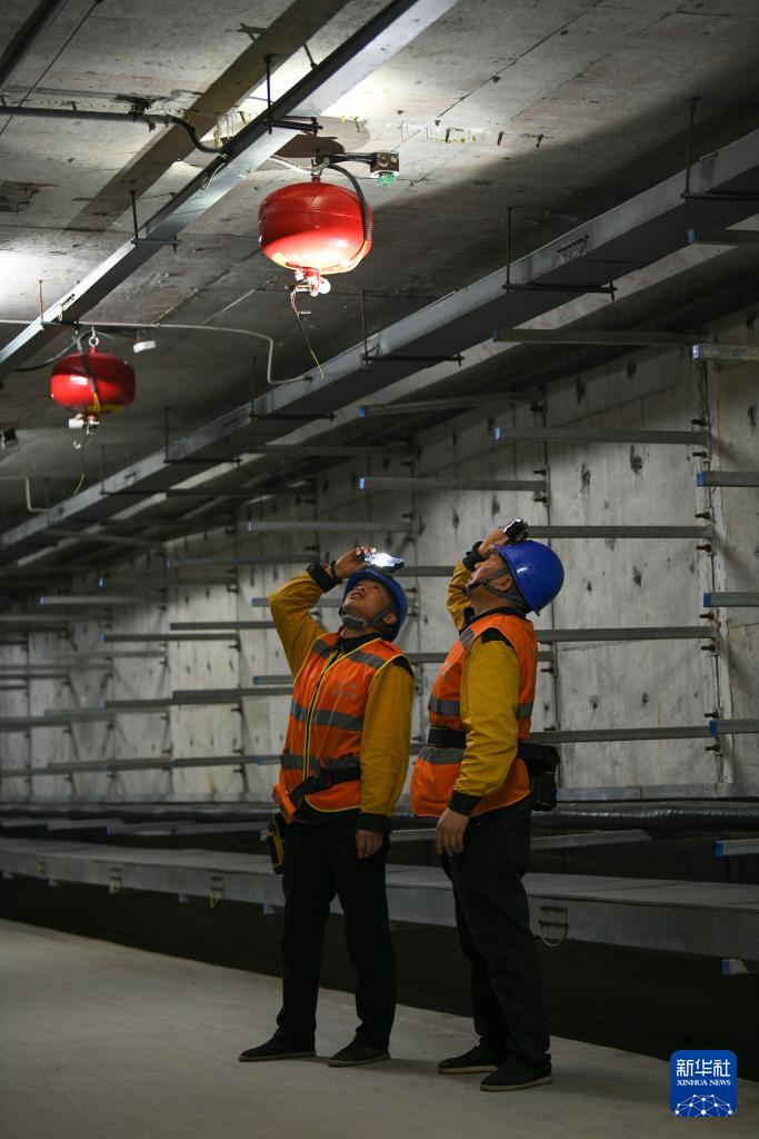 1月26日,在四川天府新区雅州路综合管廊,工作人员在设备层检查水泵、消防、配电设施。