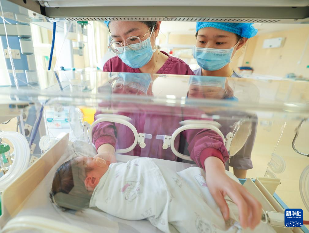1月29日,在山东省荣成市妇幼保健院新生儿重症监护病房,医护工作者对小患儿进行护理。