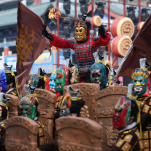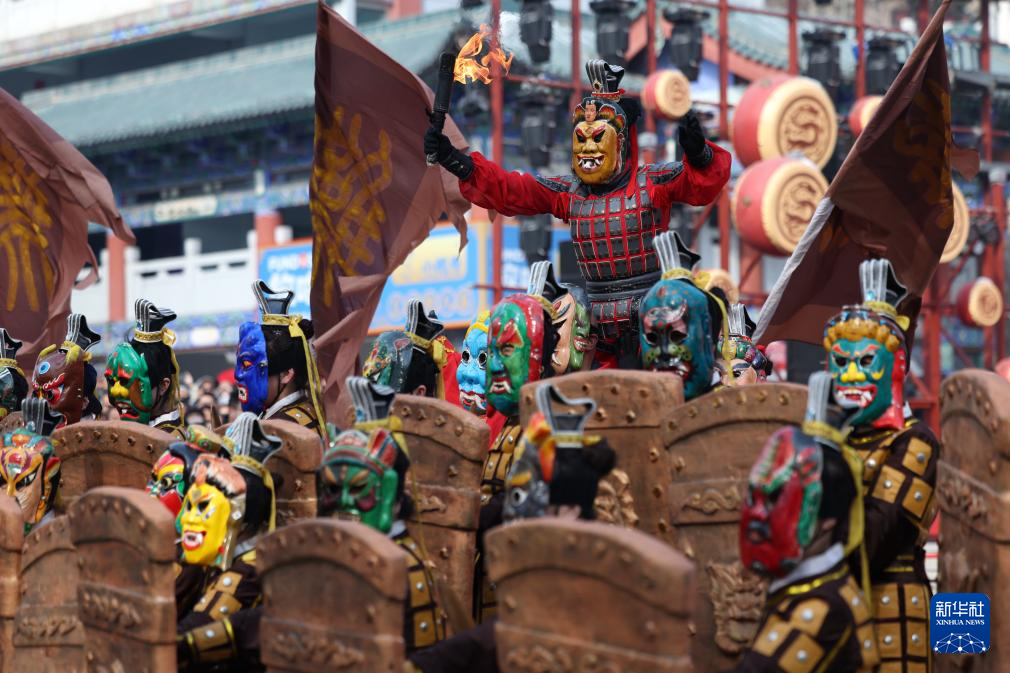 1月30日,演员在兰州市2025年春节文化庙会活动现场表演西固军傩舞。