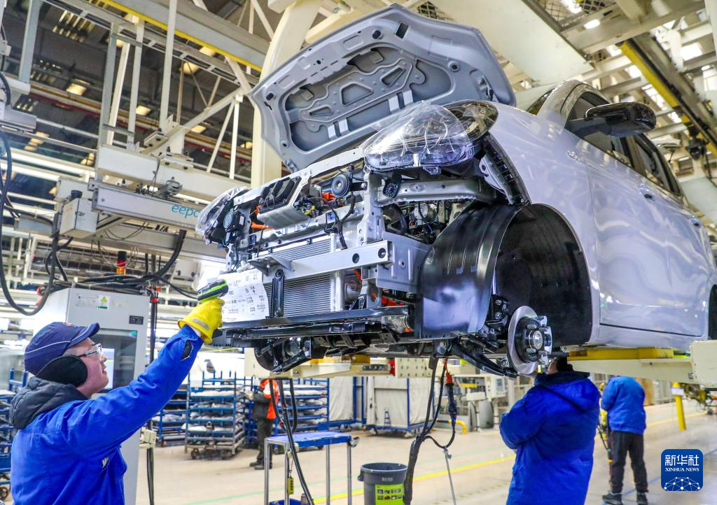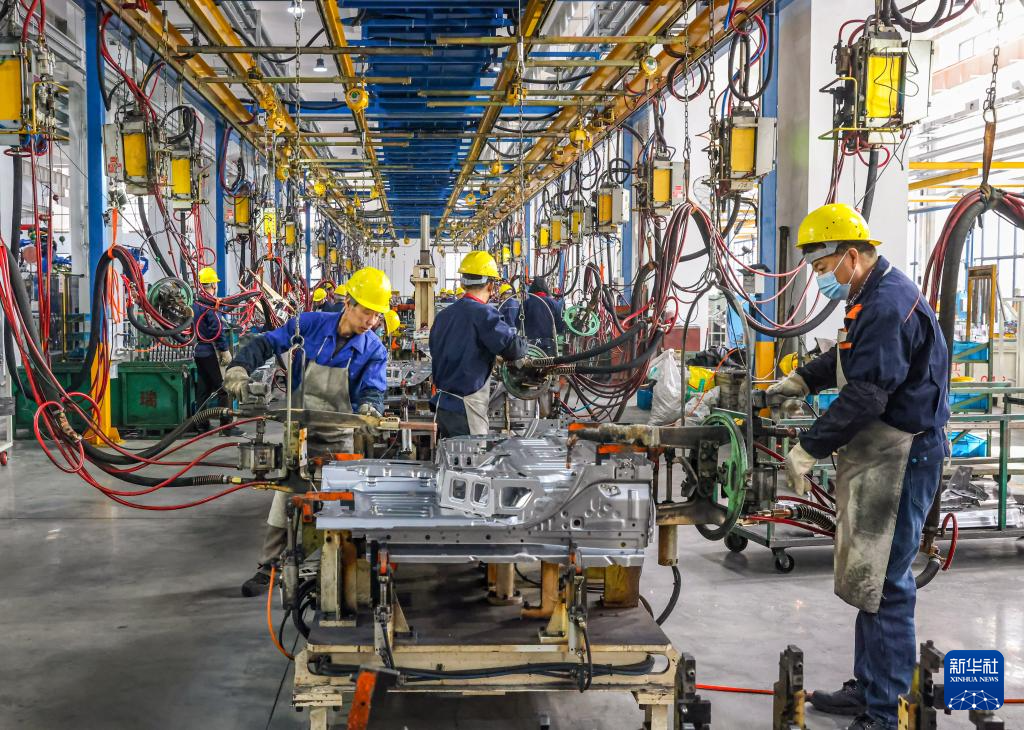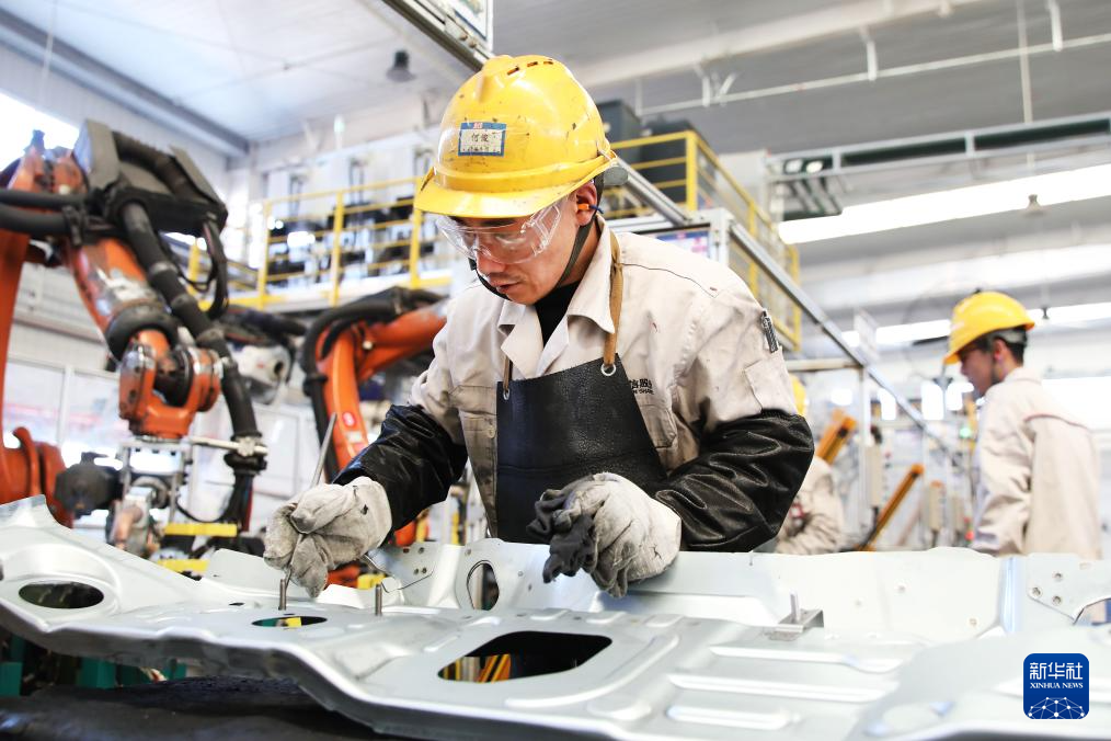2月5日,工人在位于山东自贸试验区青岛片区的上汽通用五菱青岛分公司生产车间作业。