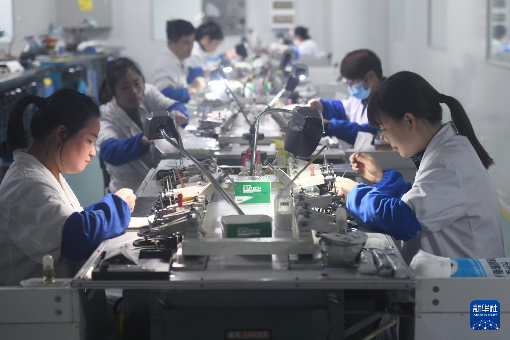 2月5日,江苏句容经济开发区一家电子产品生产企业工人在车间忙碌。