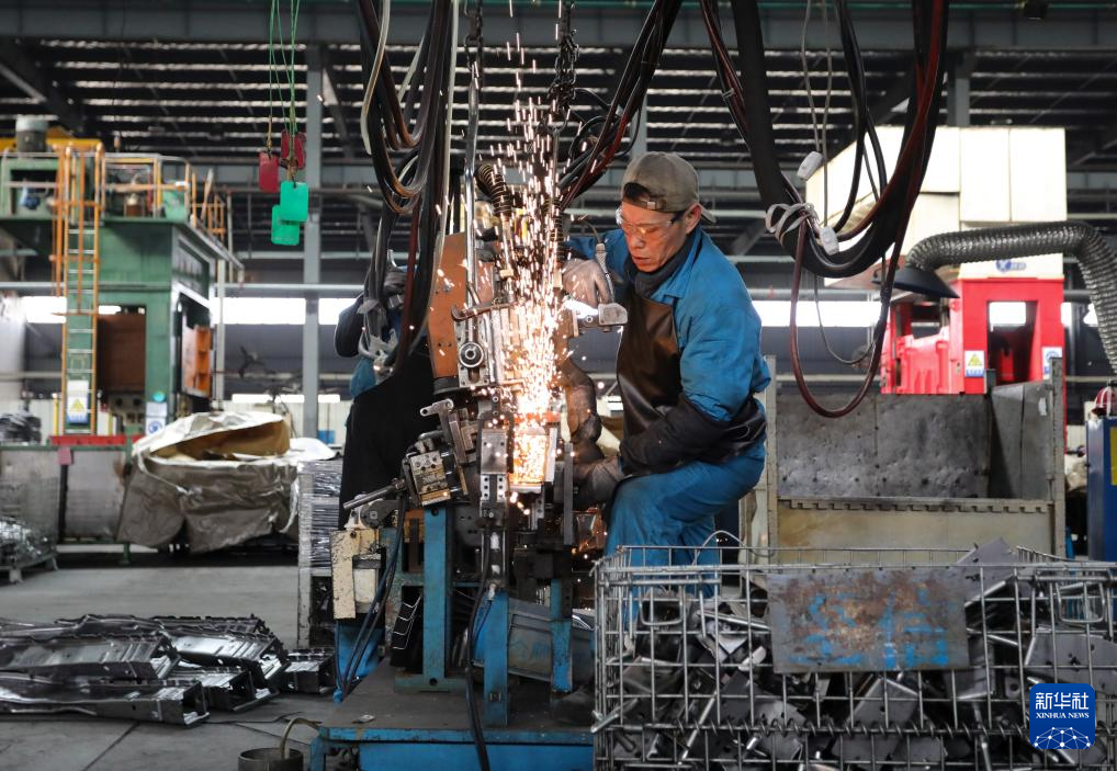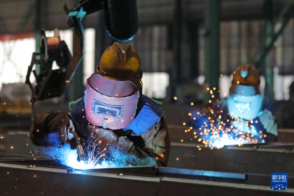 2月5日,工人在河北张家口南山汽车产业基地一家机械制造公司焊接件车间工作。