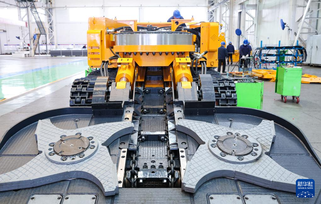2月5日,河北省石家庄煤矿机械有限责任公司工人在车间组装掘进设备。