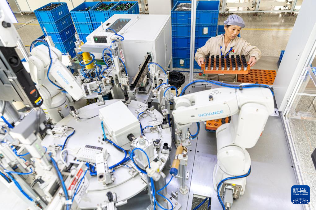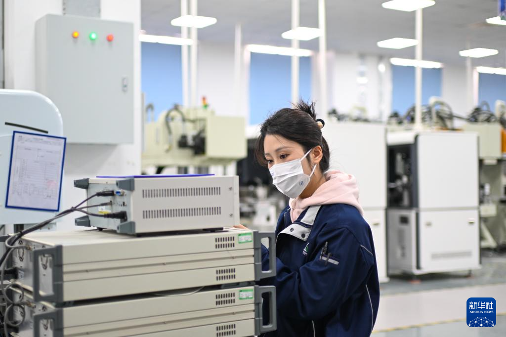 2月5日,江苏省昆山高新区通友智能装备有限公司工人在微型电感生产线上作业。
