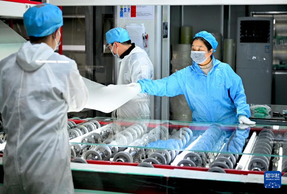 2月5日,工人在位于安徽亳州芜湖现代产业园区的一家玻璃制造企业生产车间里忙碌。