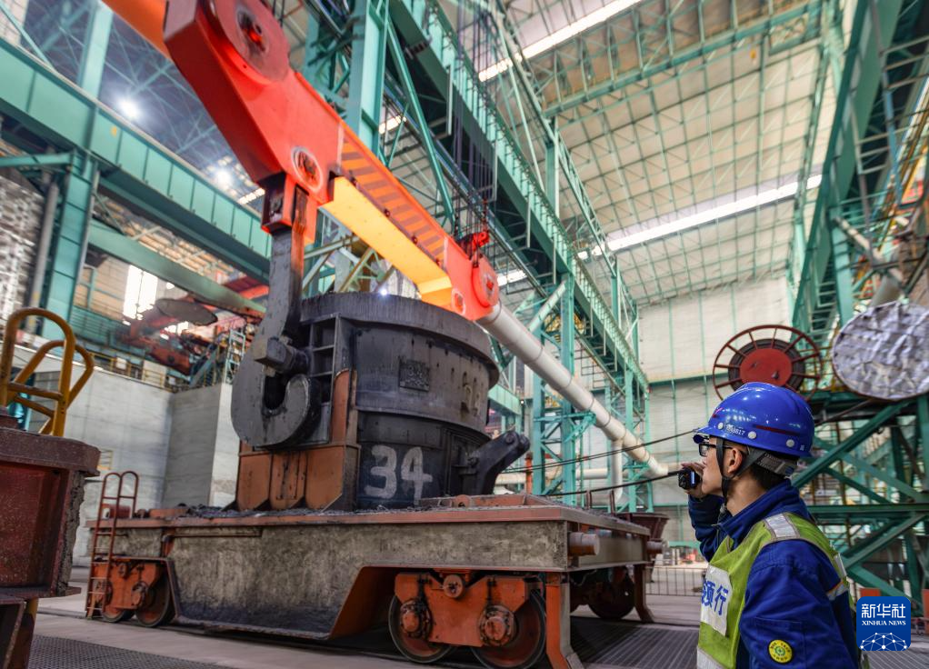 2月5日,工人在位于安徽省马鞍山市的中国宝武马钢特钢公司生产线上忙碌。