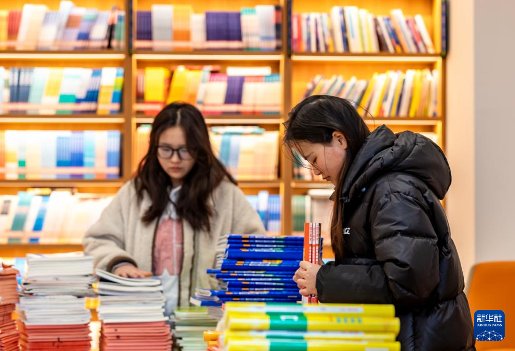 2月8日,河南省焦作市温县新华书店的工作人员在整理新学期教材。