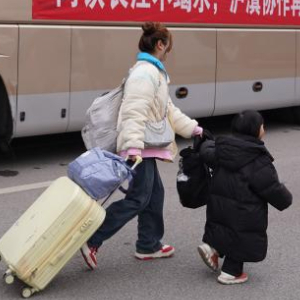 2月8日,外出务工人员在昭通市昭阳区排队上车。