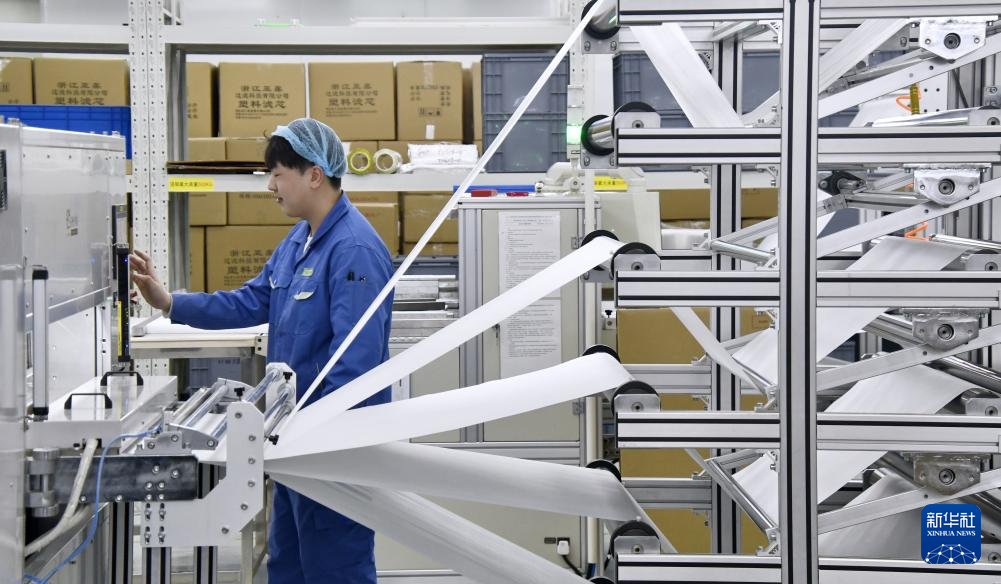 2月8日,工人在位于北京市大兴区亦庄镇的高科技企业普瑞奇科技有限公司高端流体过滤材料生产车间作业。