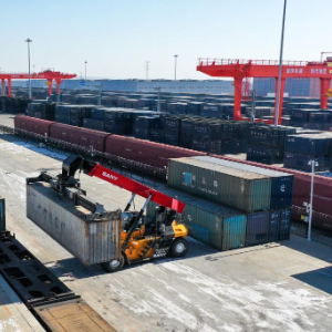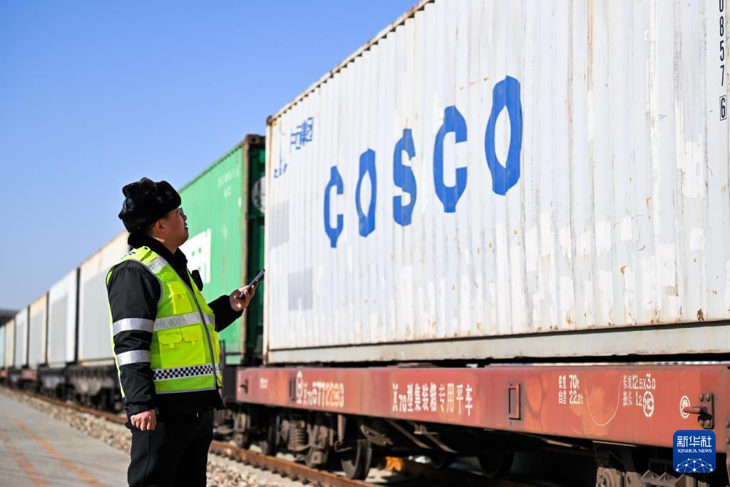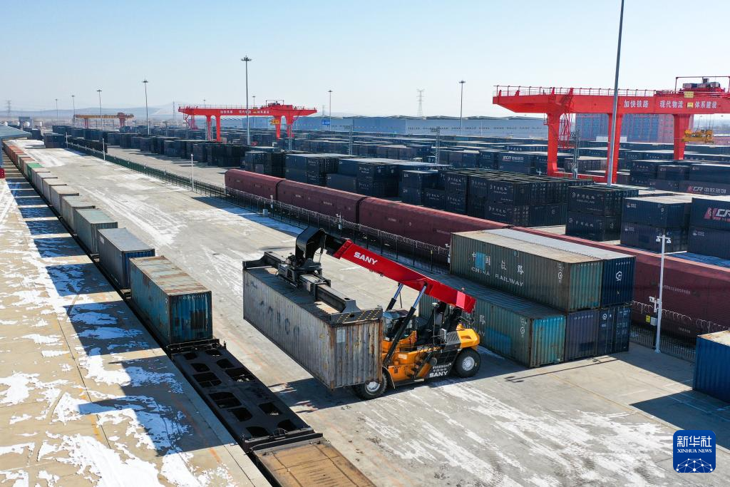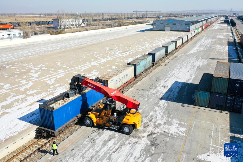 新春伊始,在内蒙古呼和浩特市中欧班列集结中心——沙良物流园内,工作人员忙碌地开展中欧班列集装箱装运工作。今年以来,为有效保障中欧班列运输通畅,中国铁路呼和浩特局集团有限公司呼和浩特铁路物流中心提前调配装卸机具和人员,对中欧班列采取优先装卸、优先配车、优先发运等措施,助力中欧班列安全高效开行。