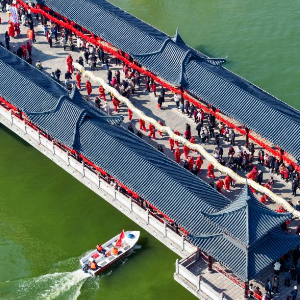 当日是农历正月十六,安徽省滁州市全椒县传统民俗活动“走太平”拉开帷幕。巡游队伍穿过太平桥,献上精彩纷呈的民俗表演。