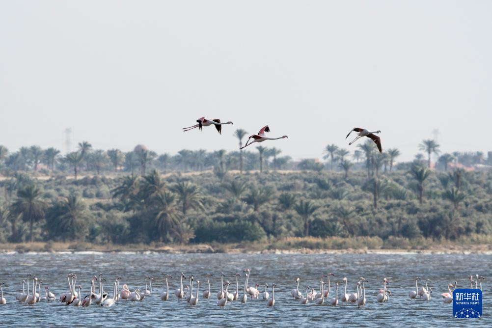 每年冬季,大批火烈鸟会飞抵埃及法尤姆省内的加龙湖觅食越冬。