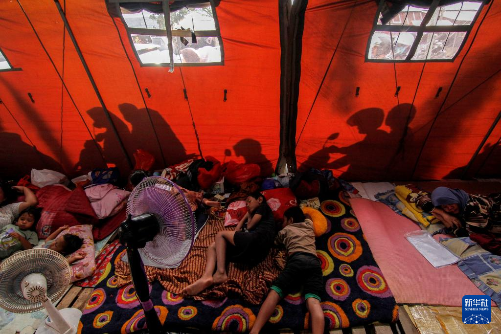3月6日,在印度尼西亚廖内省北干巴鲁,人们在一处临时避难所休息。