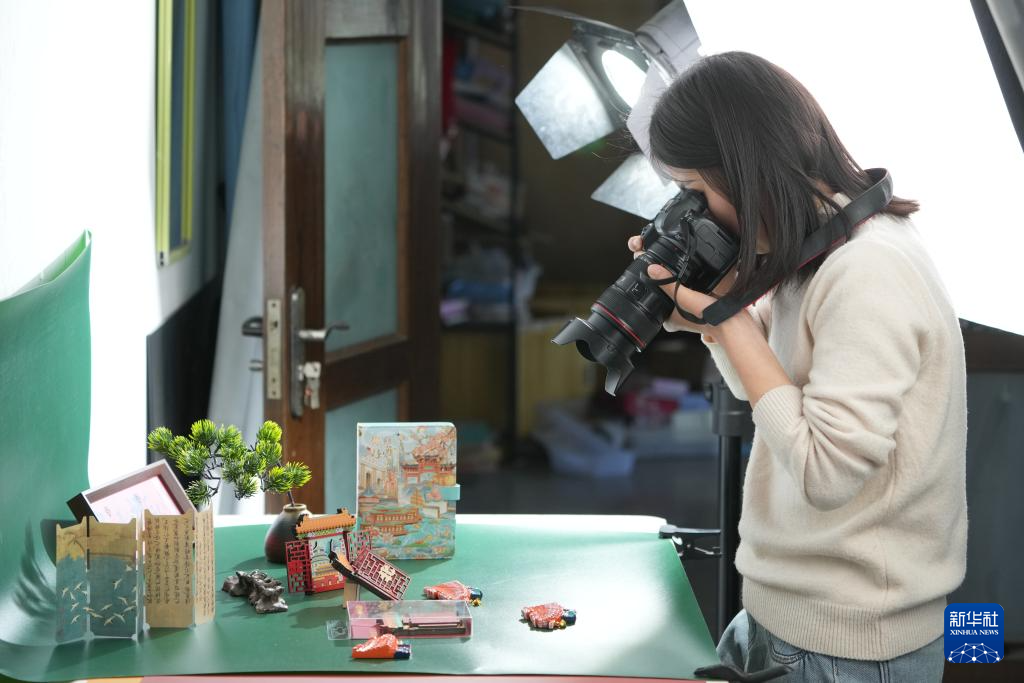 3月20日,在宁波素年工艺品有限公司,工作人员在拍摄产品宣传照。