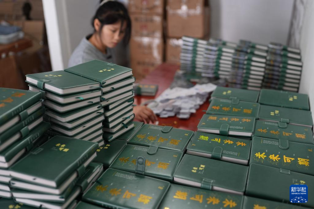 3月20日,工作人员在宁波素年工艺品有限公司生产车间包装一款文创笔记本。
