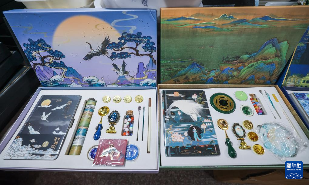 这是宁波素年工艺品有限公司设计的国风元素的火漆套装(3月20日摄)。