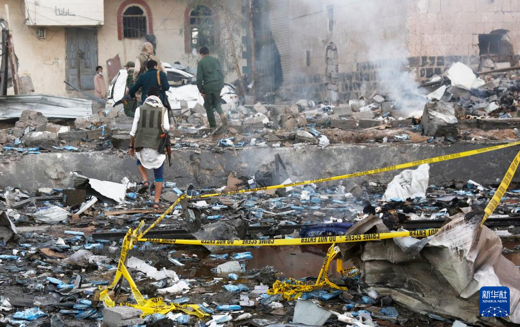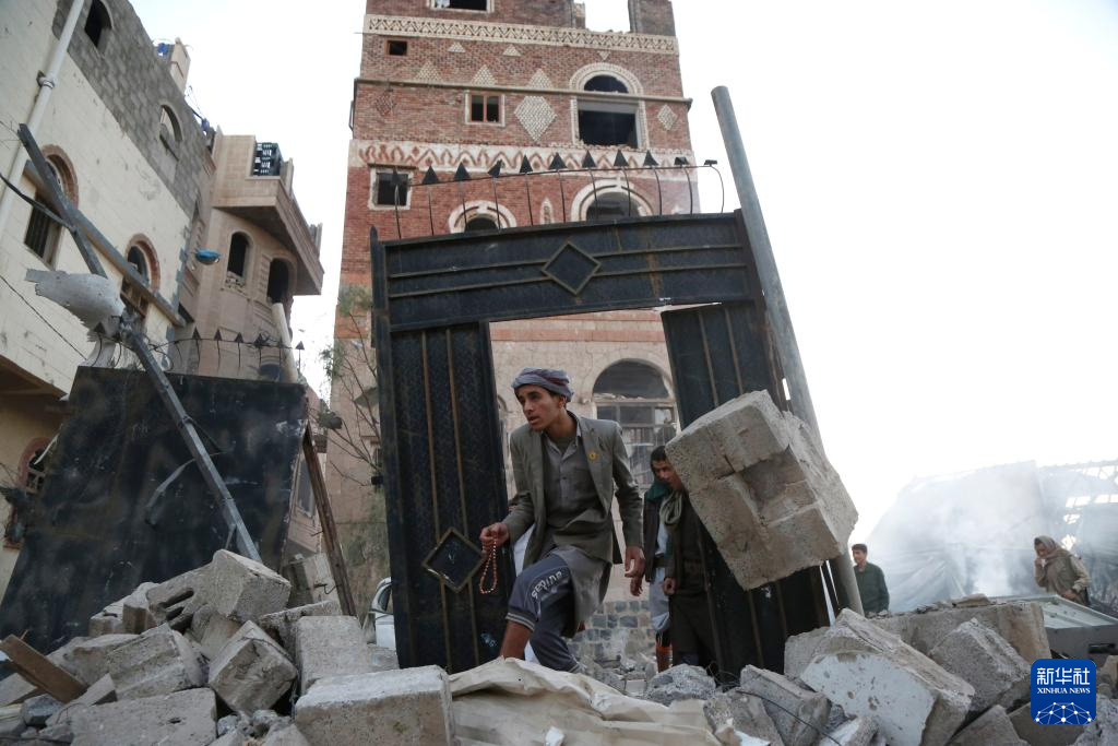 这是3月20日在也门首都萨那拍摄的被美军空袭摧毁的建筑。