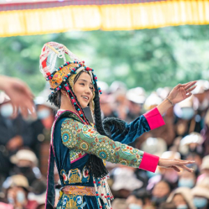 3月28日,人们在拉萨市宗角禄康公园内载歌载舞,庆祝西藏百万农奴解放66周年。