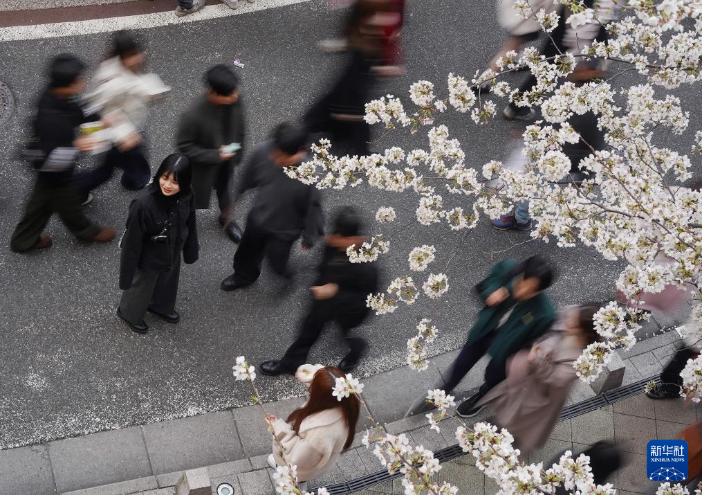 3月30日,游客在日本首都东京目黑川畔赏樱。
