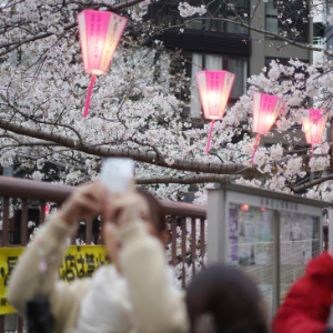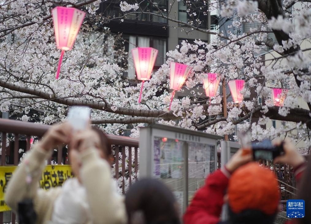 近日,日本东京迎来樱花季,目黑川畔樱花盛开,引游人参观游览。