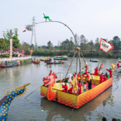 “双庙渚蚕花水会”是桐乡市洲泉镇一项蚕乡风俗浓郁的群众性文化活动,活动期间附近村民纷纷出动各类船只进行精彩的水上表演,期盼养蚕丰收、生活幸福。