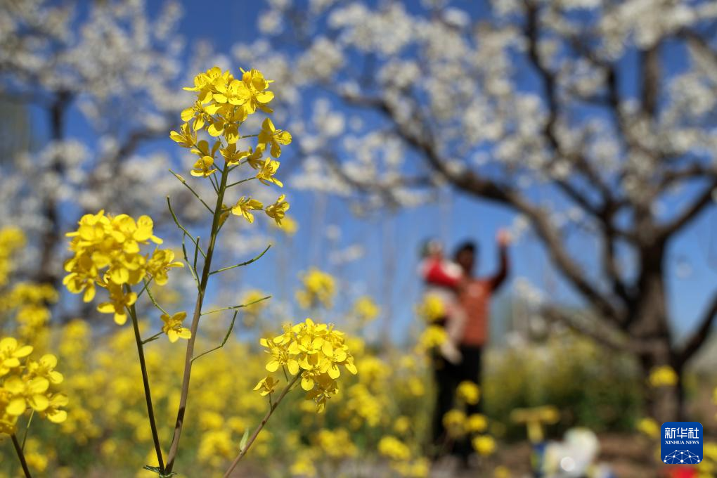 4月5日,游客在河南省安阳市内黄县东庄镇梨花园踏青赏花。