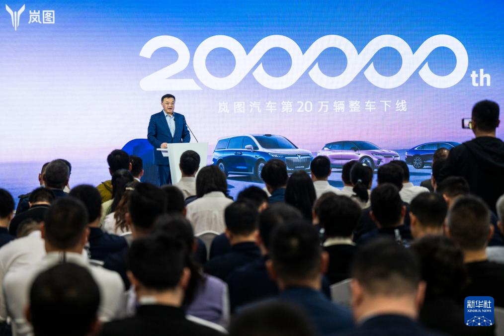 4月9日拍摄的岚图汽车第20万辆整车下线仪式现场。
