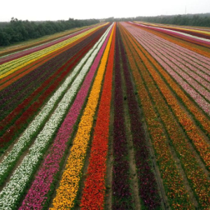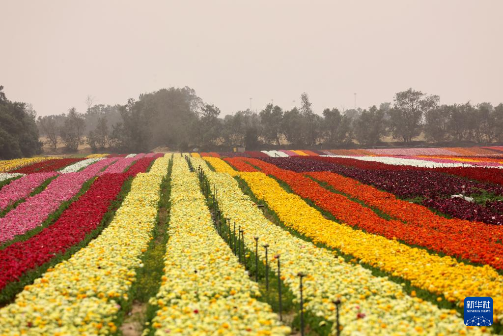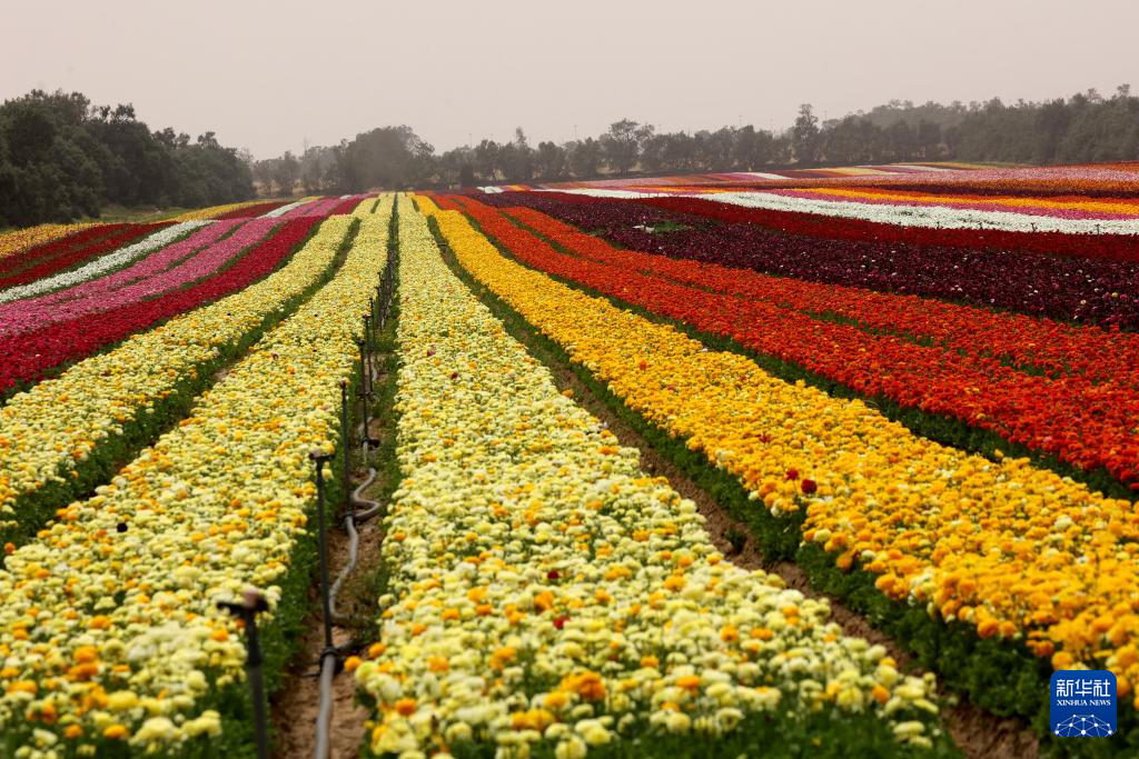 每年春季,缤纷的毛茛花在以色列各地绽放,犹如“彩虹”铺展田间。