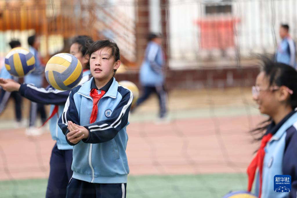 这是学生在操场上的“AI运动小站”进行课间活动(4月11日摄)。