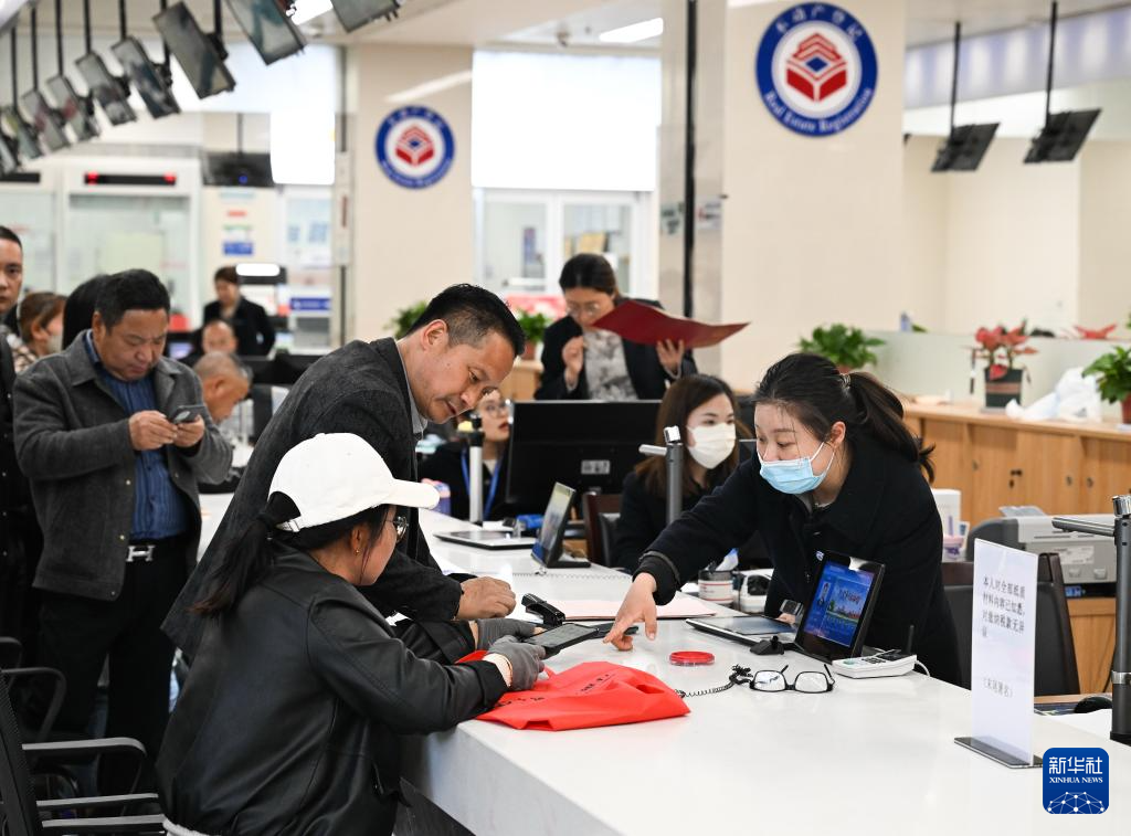 4月14日,市民在淮安市洪泽区政务服务中心不动产集成服务区办理业务。