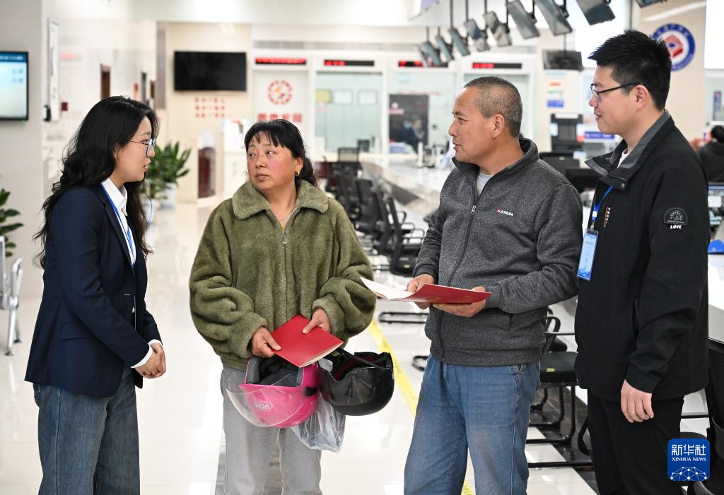 4月14日,在淮安市洪泽区政务服务中心,洪泽区纪委监委工作人员(左一、右一)了解群众满意度。当地纪委开展“正风提效 真抓实干”专项行动,推动窗口单位进一步以“好作风”提供“好服务”。