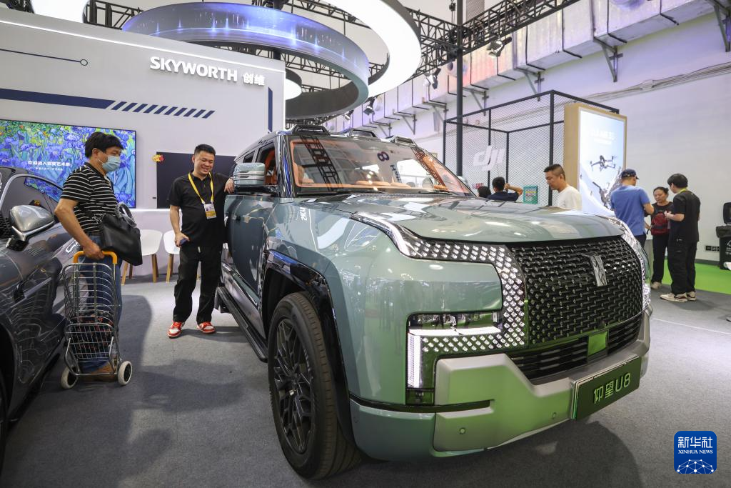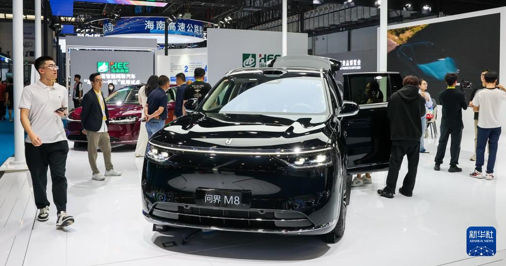 4月16日,观众在消博会现场了解华为问界M8汽车。