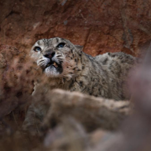 西藏阿里改则县改则镇玉多村附近岩山区域拍摄到的国家一级保护动物雪豹(4月18日摄)。
