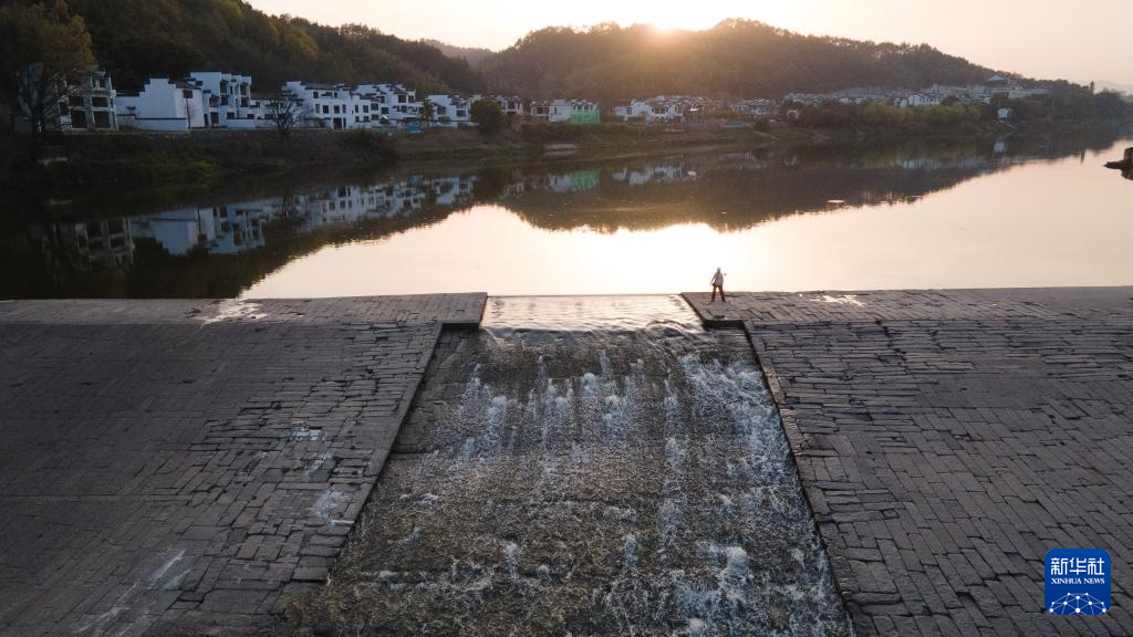 这是3月24日拍摄的位于安徽省黄山市歙县的渔梁坝(无人机照片)。