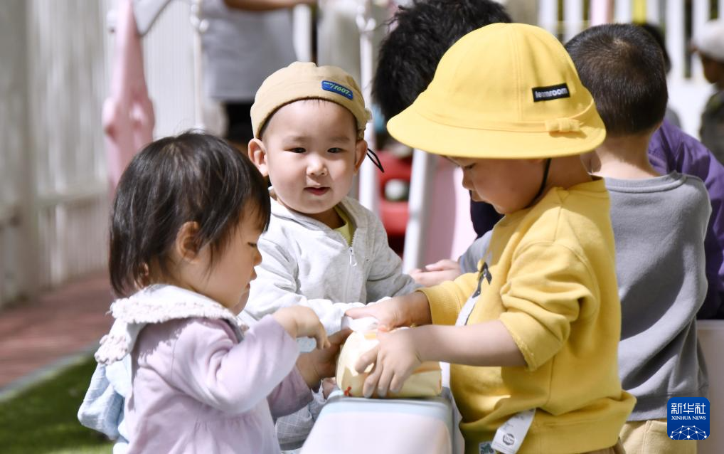 4月17日,孩子们在朝阳区托育综合服务中心玩耍。