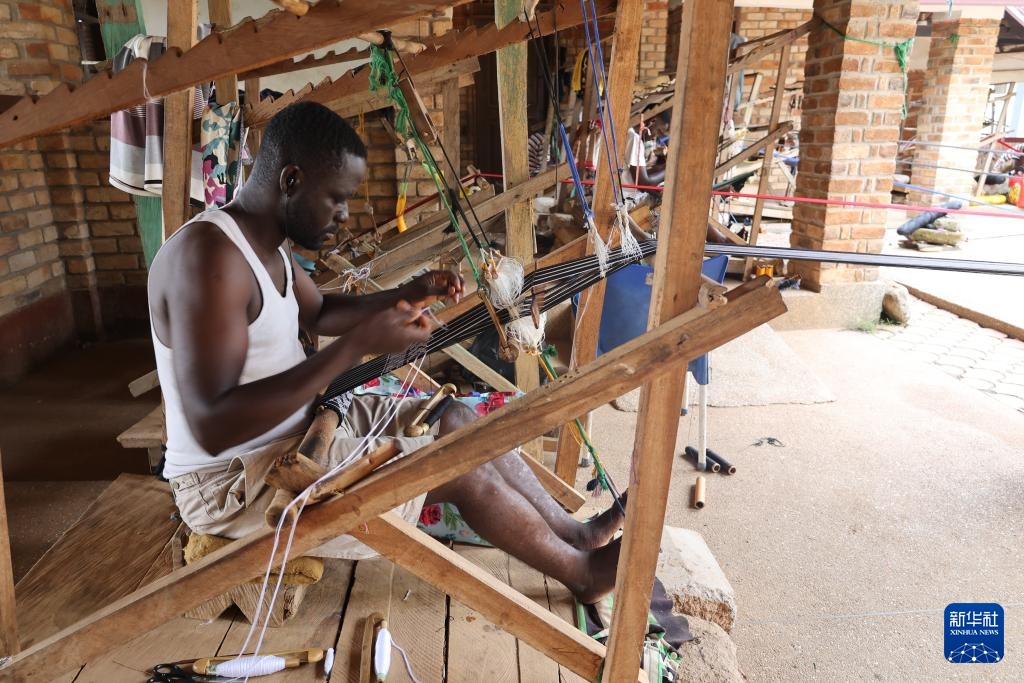 3月13日,在加纳阿散蒂省库马西市,一名织工在工坊编织“肯特布”。