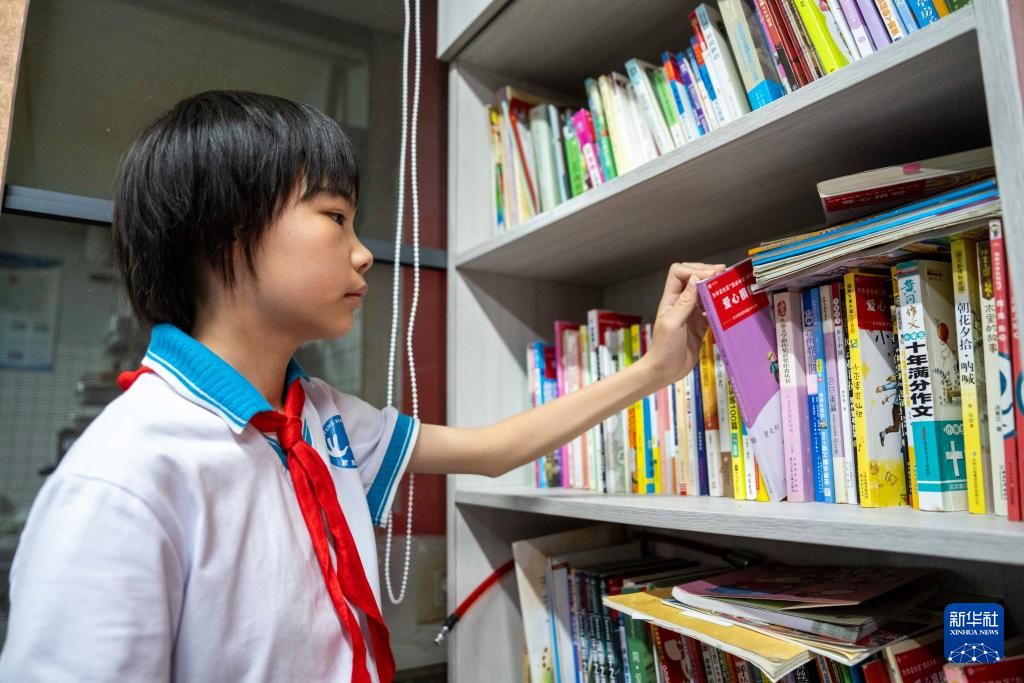 4月23日,学生在长沙华夏农贸市场“四点半角”选取书籍。