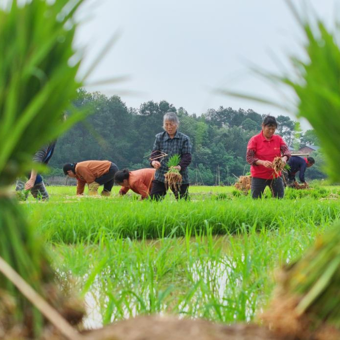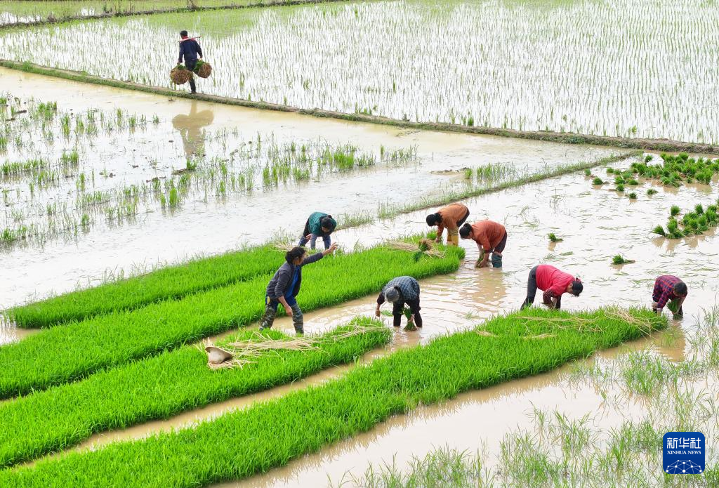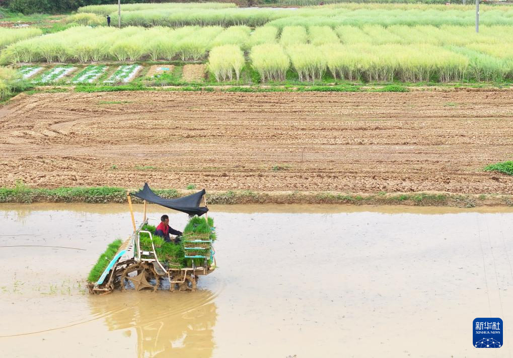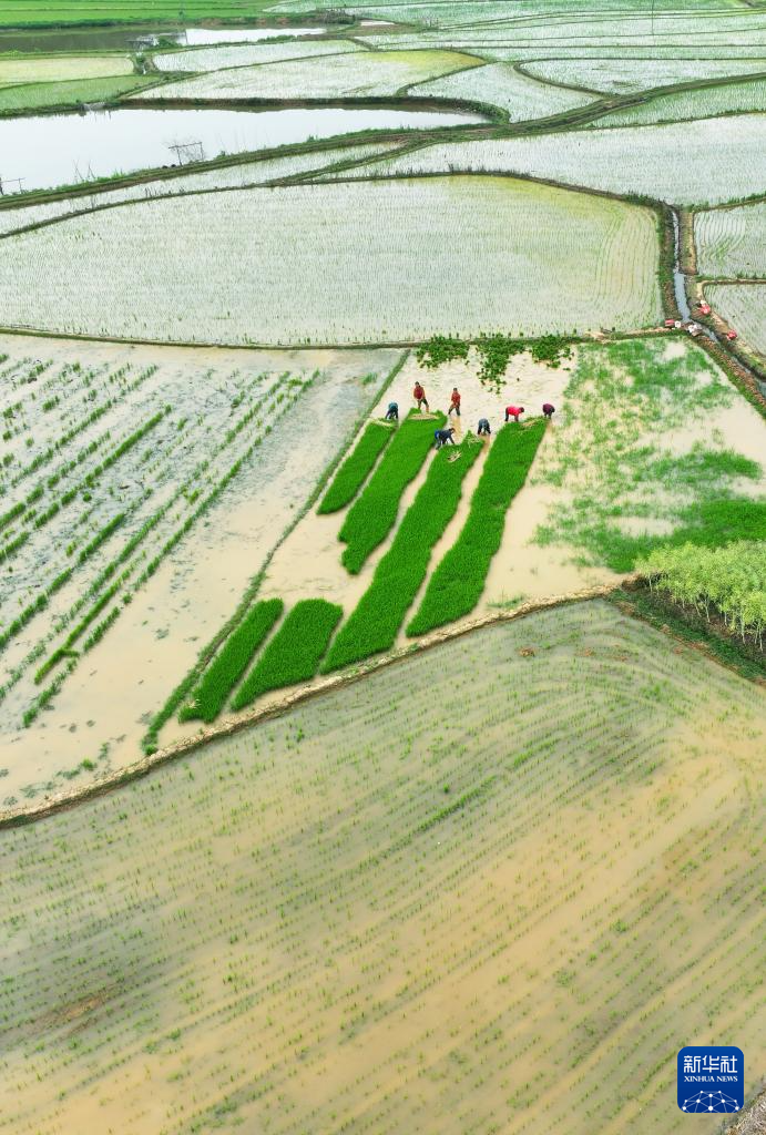 近日,湖南省衡阳市春耕生产进入尾声,农民抢抓农时进行早稻插秧工作。