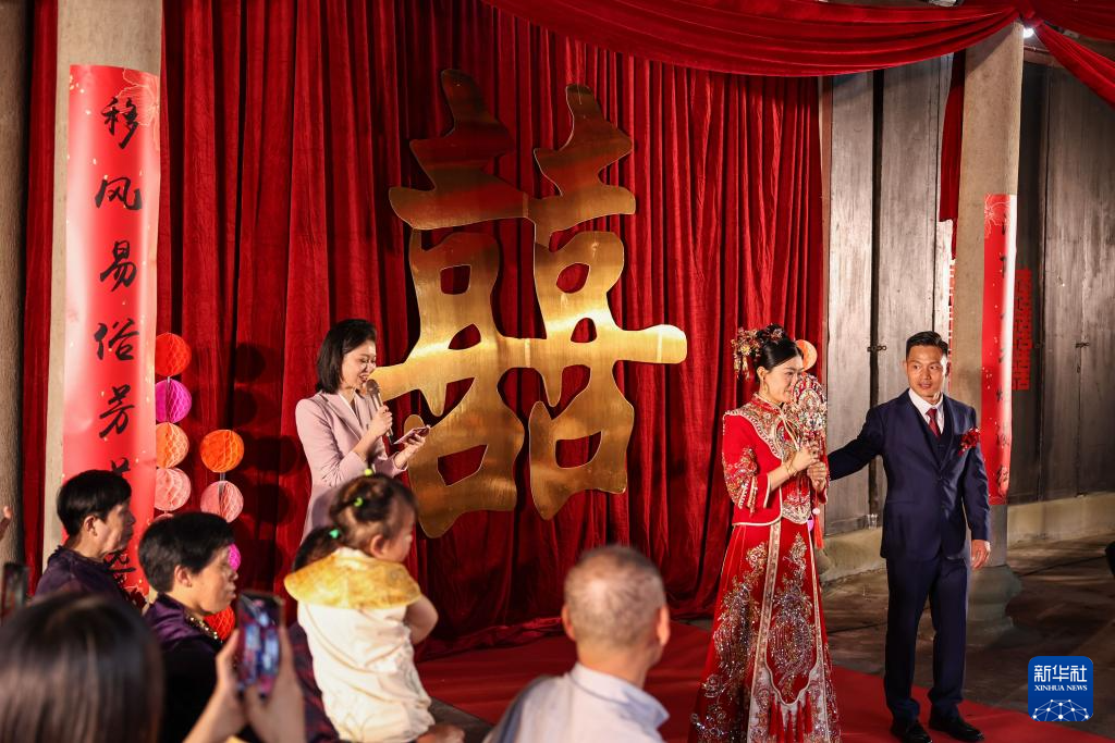 据了解,他们是参加诸暨市“越风有囍·诸事暨成”婚礼活动的首对新人,该活动立足推进婚俗改革,通过“爱情巴士”、公益主持、金牌乡厨参与等方式,举办地方特色主题婚礼,探索简约适度、文明健康的婚俗新风尚。