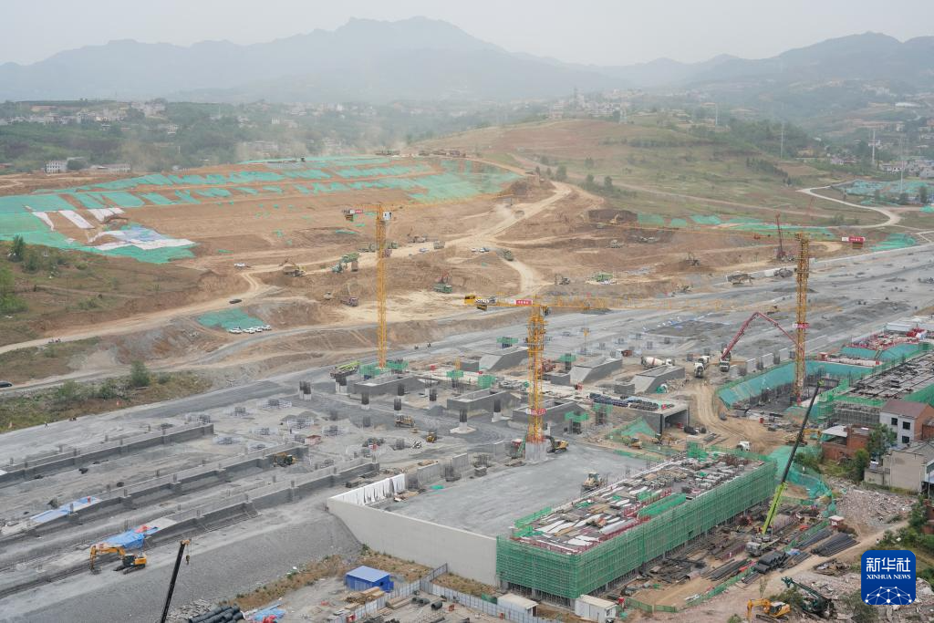 4月29日拍摄的西渝高铁安康西站建设现场。