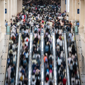 5月1日,在上海虹桥火车站,旅客通过闸机准备乘车。