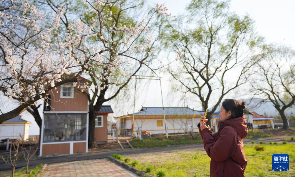 4月28日,王佳玉在村中的朝鲜族庭院内拍照。