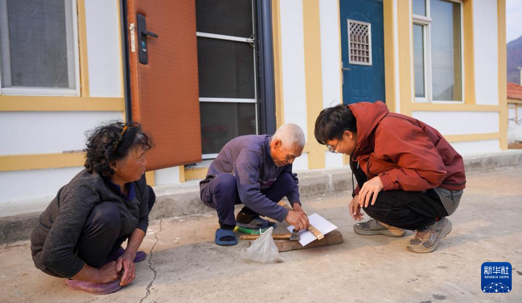 4月28日,王储(右一)在北兴村村民家中与村民交流。