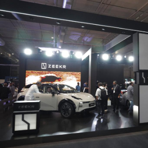 5月4日,在沙特阿拉伯利雅得举办的展会上,观众参观极氪汽车。