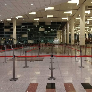 这是5月7日拍摄的已关闭的巴基斯坦伊斯兰堡国际机场(手机照片)。