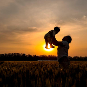 5月10日,一位母亲带孩子在山东省淄博市高青县的麦田里玩耍。