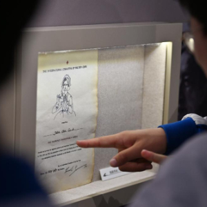 5月16日,参观者在天津医学博物馆参观南丁格尔奖证书。